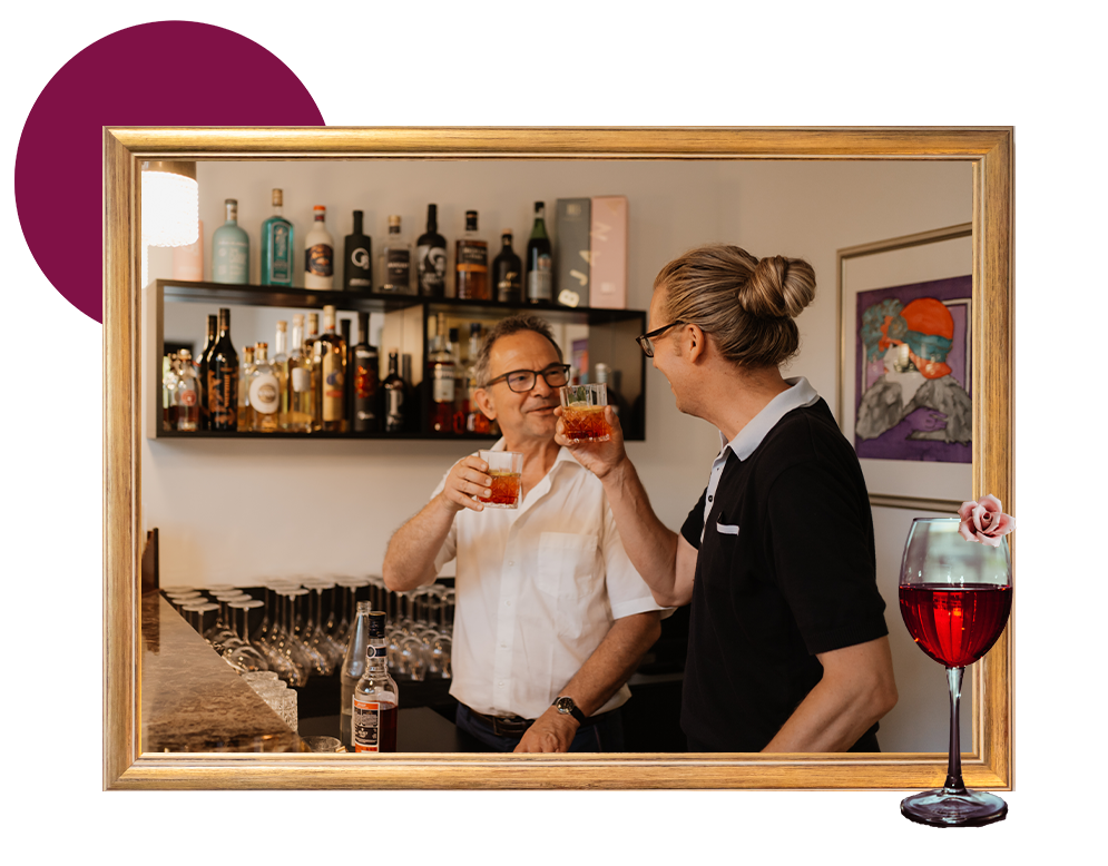An der Bar der maison 41 treffen sich Gäste, Gespräche und kleine Genussmomente. Hier schlägt das Herz des Hauses; ein Ort voller Inspiration, Begegnung und Lebensfreude.
